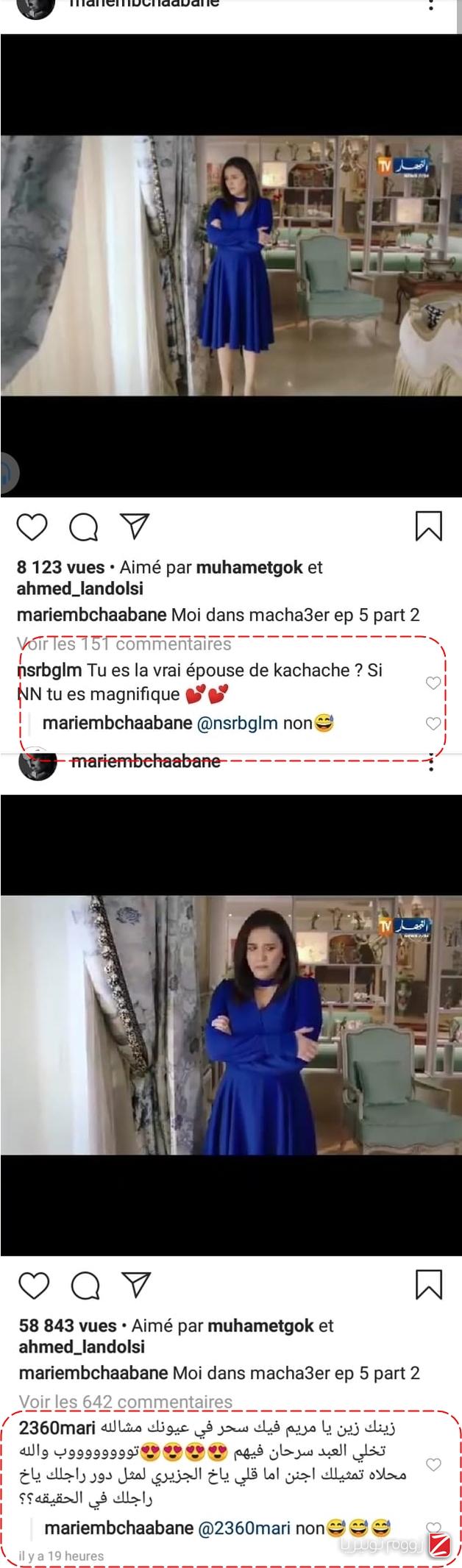 الممثلة التونسية مريم بن شعبان، التي تقوم بدور "مريم" زوجة "الطاهر" البطل الجزائري حسان كشّاش، كثيرون أشادوا بأداءها وتحدثوا عن أنّها زوجة كشّاش في الحقيقة إلاّ أنّ مريم أصبحت تردّ علـى هذه الأقاويل عبر حسابها الشخصي على "الانستغرام".