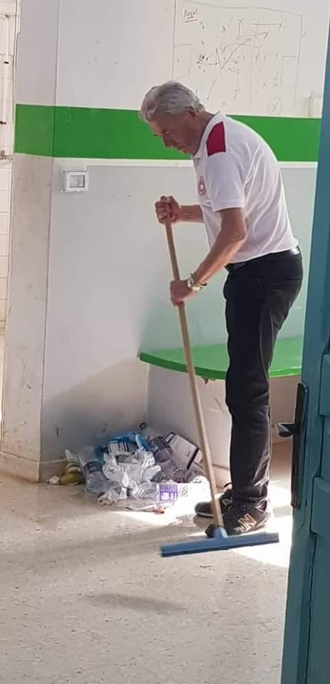 تداول روّاد مواقع التواصل الاجتماعي صورة لمدرّب النجم الساحلي روجي لومار، وهو بصدد تنظيف حجرات ملابس النجم الساحلي قبل مباراته ضدّ النادي البنزرتي يوم أمس.