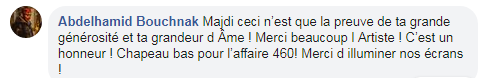 من جهته علّق عبد الحميد بوشناق على تدوينة السميري حيث شكره بدوره مهنئا إياه بمسلسل "القضية 460 " ومعبرا عن إعجابه بالعمل.