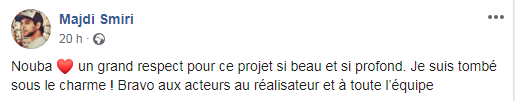 ونشر المخرج الشاب مجدي السميري تدوينة على حسابه الرسمي عبّر فيها عن إعجابه بالعمل الرمضاني "النوبة" للمخرج عبد الحميد بوشناق.
