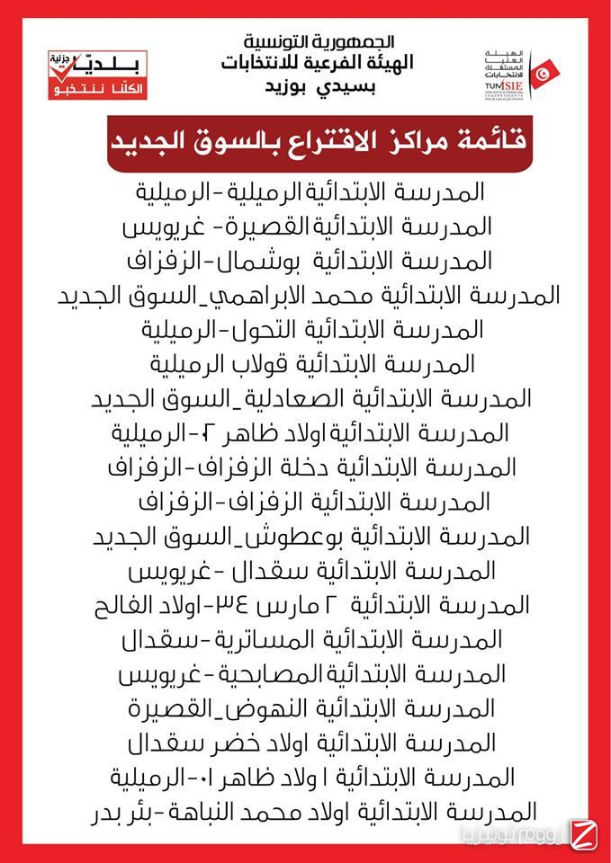 وإليكم قائمة مراكز الإقتراع للانتخابات البلدية الجزئية بسوق الجديد:
