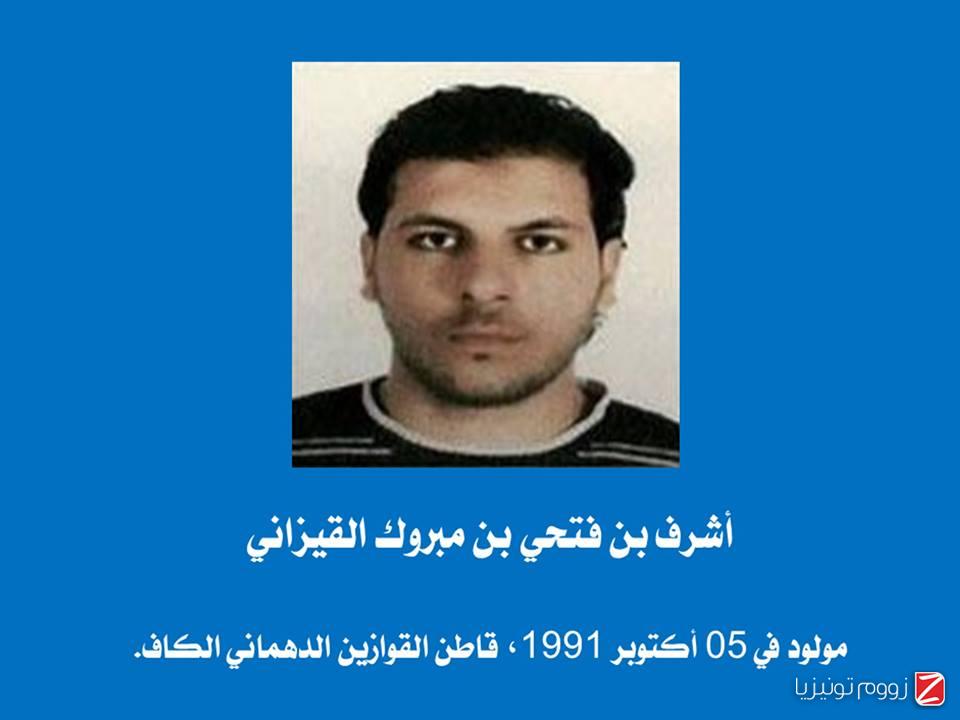 2) "أشرف بن فتحي بن مبروك القيزاني" مولود في 05 أكتوبر 1991، قاطن القوازين الدهماني الكاف .