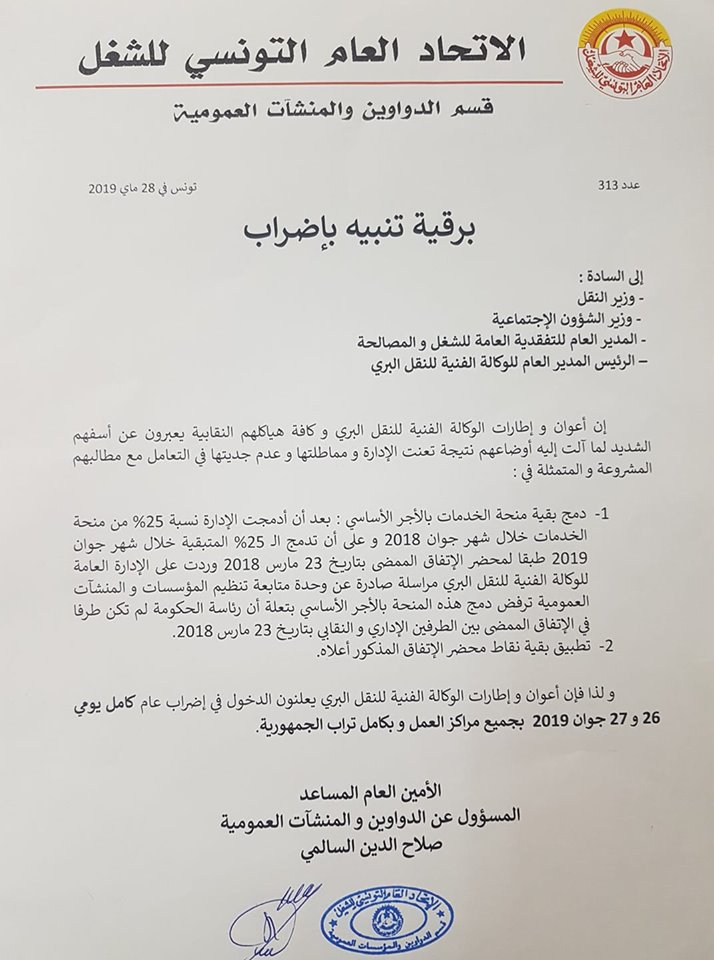 كما دعا الأعوان إلى تطبيق بقية نقاط محضر الإتّفاق.