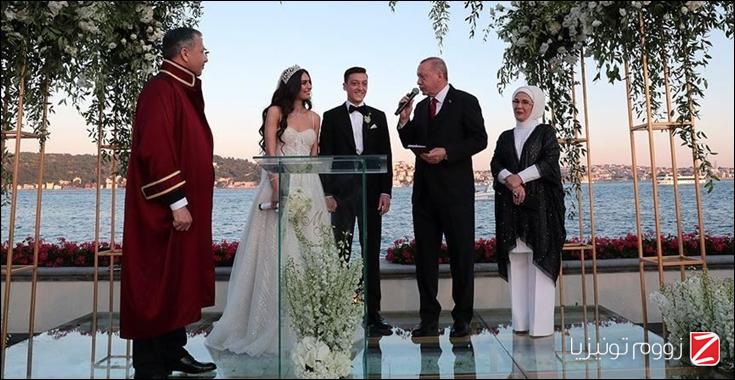 وتمنى أردوغان للعروسين حياة سعيدة وقدّم وثيقة الزواج لأمينة جولشه، بحضور أقارب العروسين وشخصيات مهمة في عالم الرياضة والفن.