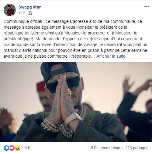 وفي ما يلي نص التدوينة التي وردت على صفحة الفايسبوك الرسمية لسواغ مان باللغة الفرنسية.