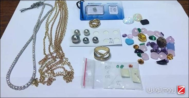 ووفق بلاغ الديوانة، فقد تمّ العثور لدى هذا المسافر على كمية من المصوغ التي لم يصرح بها وتحتوي على قطع من اللؤلؤ والألماس والذهب بلغت قيمتها 40 ألف دينار.