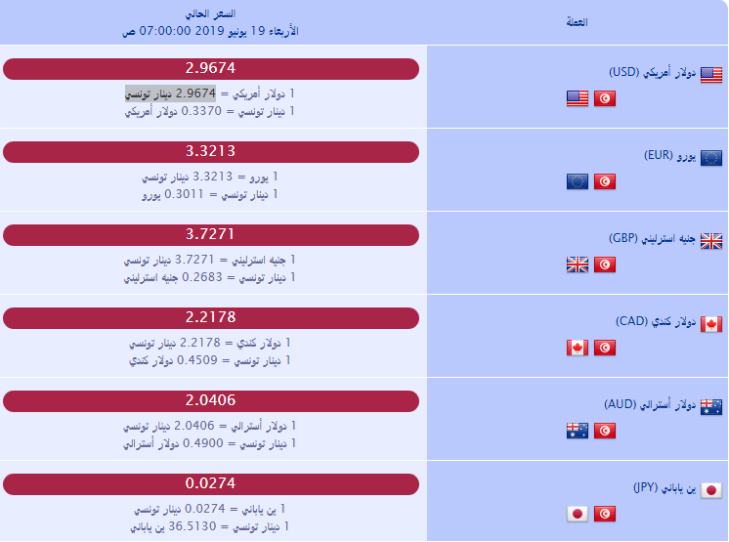 وفي ما يلي أسعار بقية العملات بالدينار التونسي: