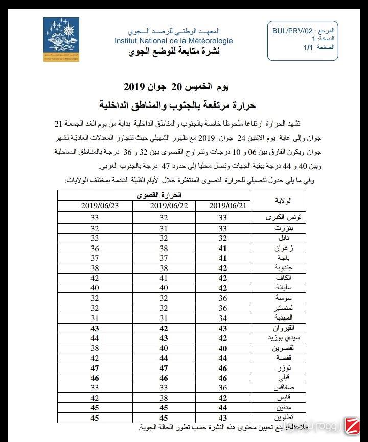 أعلن المعهد الوطني للرصد الجوي عن التوقعات الجوية ليوم الغد الجمعة 21 جوان 2019: