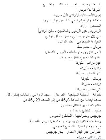 مع العلم أن شركات النقل على استعداد لإضافة خطوط شاطئیة أخرى عند الطلب وذلك بالتنسیق مع السلطات الجھویة.