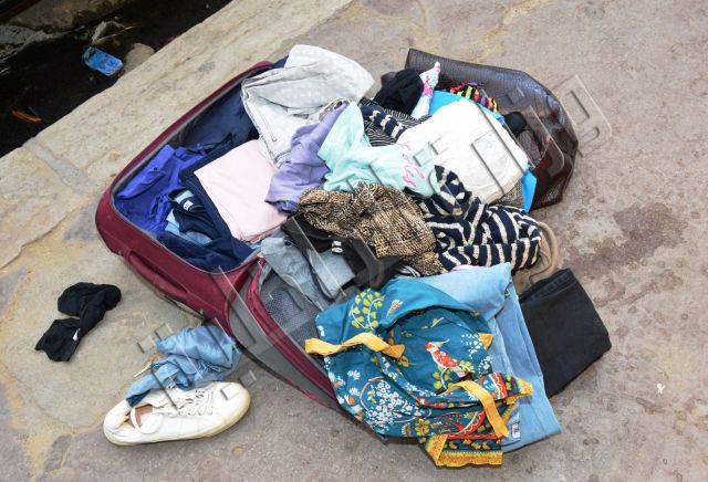 وبتفتيش الحقيبة تبين أنها تحتوي على ملابس مستعملة.