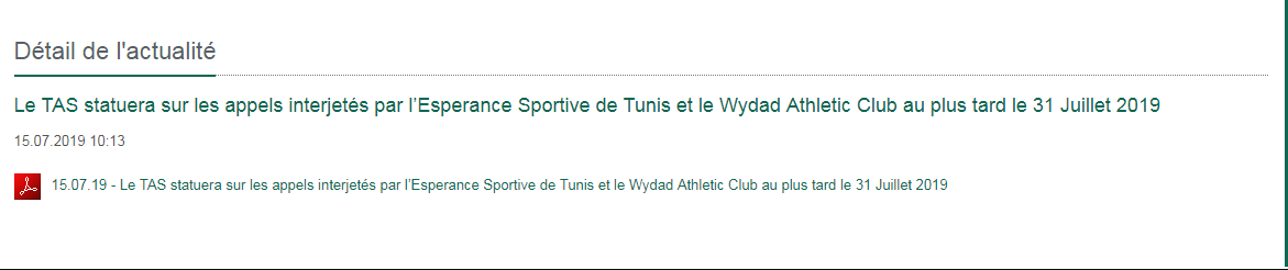 وذكرت "التاس" في بلاغ رسي أصدرته أن القرار النهائي بخصوص المباراة سيصدر يوم 31 جويلية الجاري.