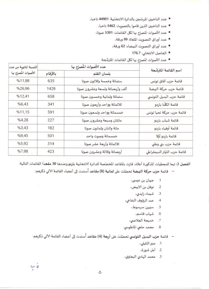 قائمة شباب باردو : 227 صوتا / مقعد واحد (1)