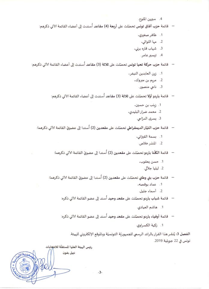 قائمة حركة تحيا تونس: 591صوتا / 3 مقاعد