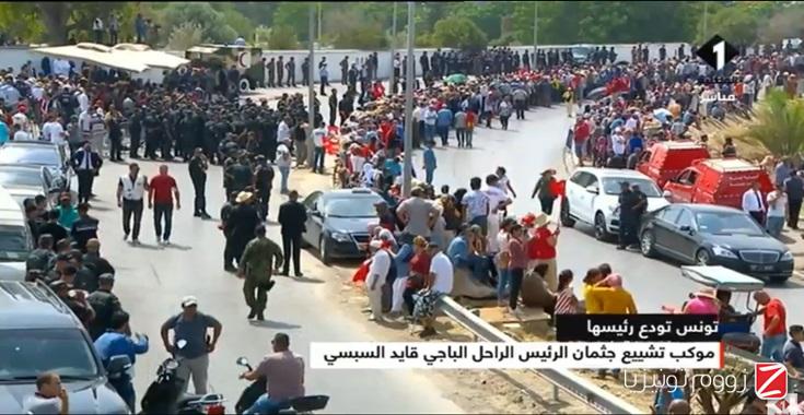 تواجد عدد غفير من المواطنين أمام قصر قرطاج وعلى طول الطريق بين القصر الرئاسي ومقبرة الجلاز أين سيتم دفن الر ...