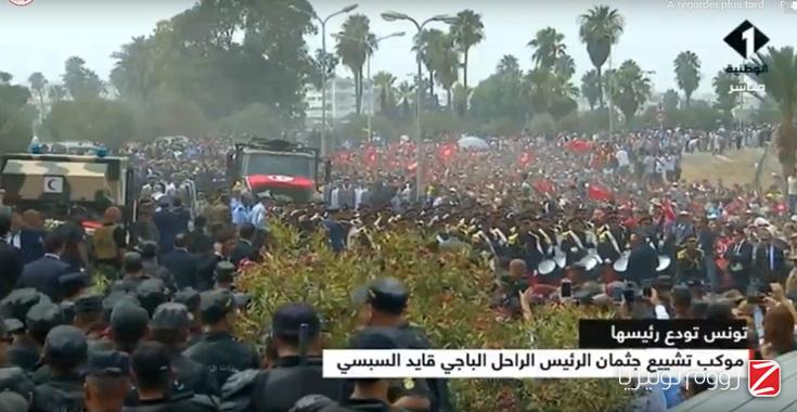 ومن جهة أخرى، قامت طائرات حربية بالتحليق في سماء شارع الحبيب بورقيبة والشوارع المجاورة نافثة ألوان العلم التونسي الأبيض والأحمر في موكب مهيب لجنازة الرئيس الراحل الباجي قائد السبسي.