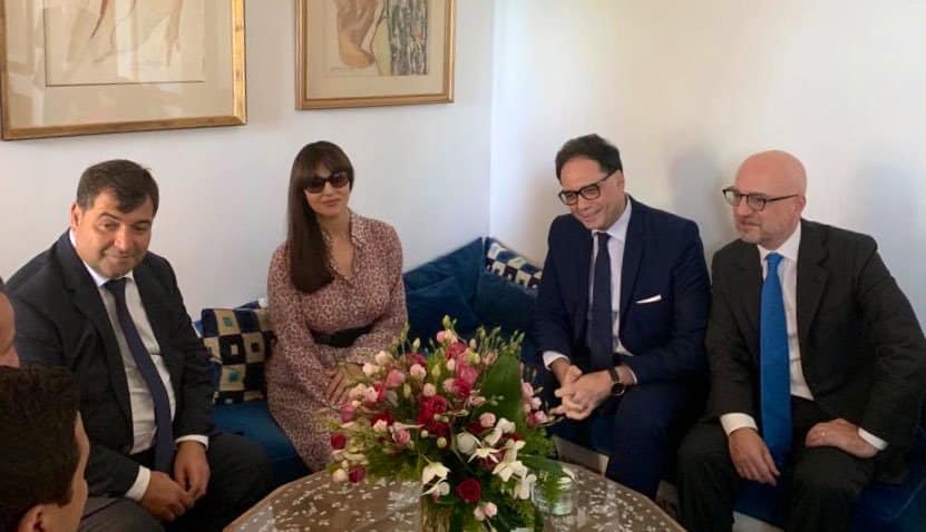 وقد كان في استقبالها كل من وزير الثقافة محمد زين العابدبن ووزير السياحة والصناعات التقليدية روني الطرابلسي بالاضافة الى سفير فرنسا بتونس أوليفيي بوافر دارفور وسفير إيطاليا بتونس Lorenzo FANARA.