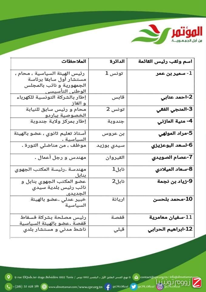 تقدّم في 20 دائرة ..رؤساء القائمات الانتخابية للمؤتمر من أجل الجمهورية
