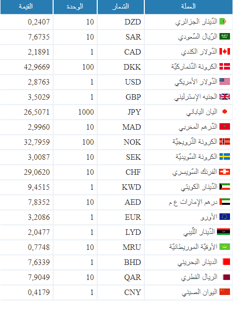 أسعار العملة بالدينار التونسي اليوم الجمعة 2 أوت 2019