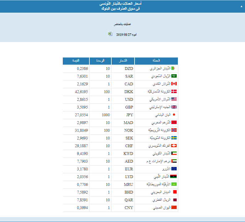 وفي ما يلي أسعار بقية العملات بالدينار التونسي: