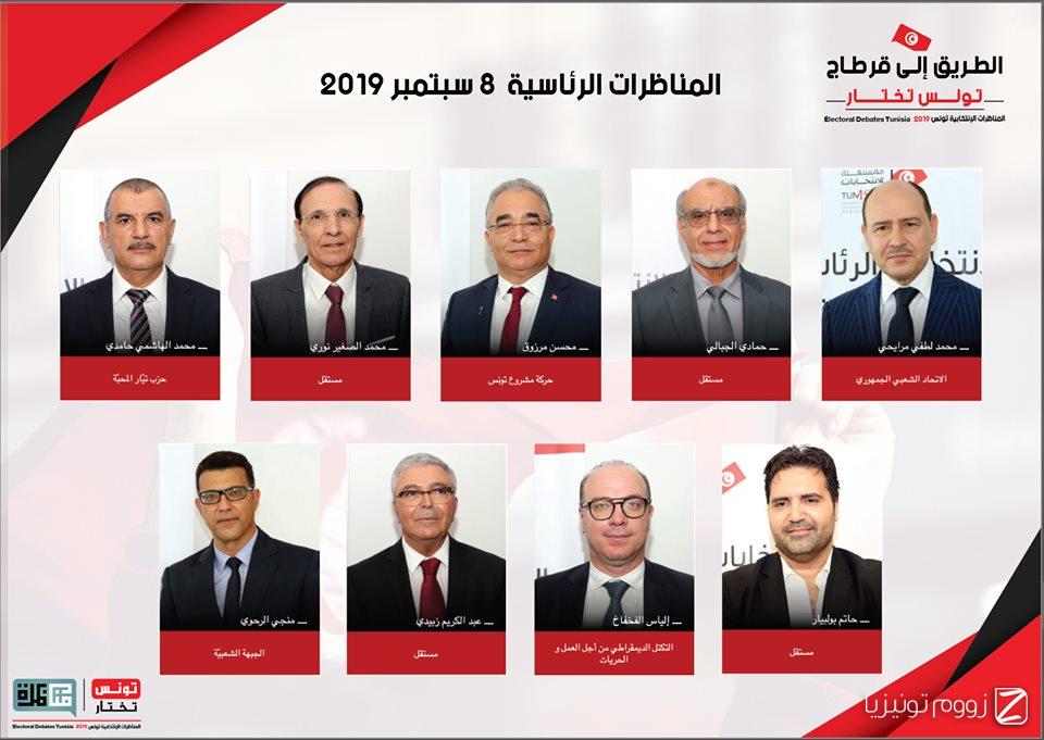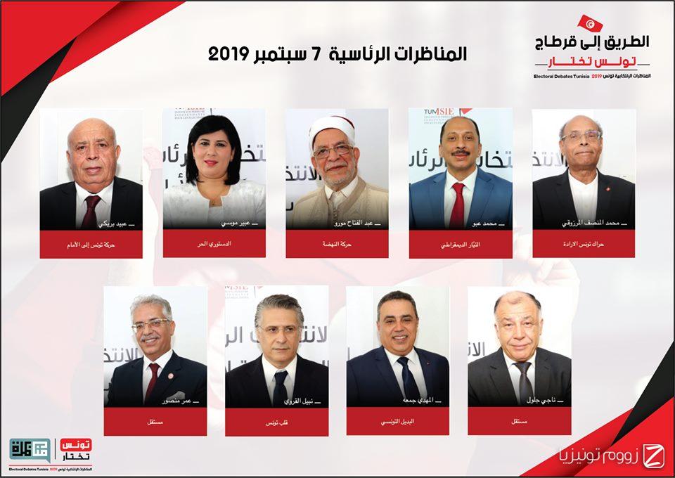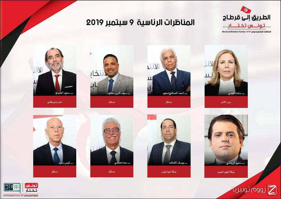 وفيما يلي ترتيب جلوس المترشحين على الكراسي خلال المناظرات والتي أفرزتها القرعة (من اليمين إلـى اليسار) :