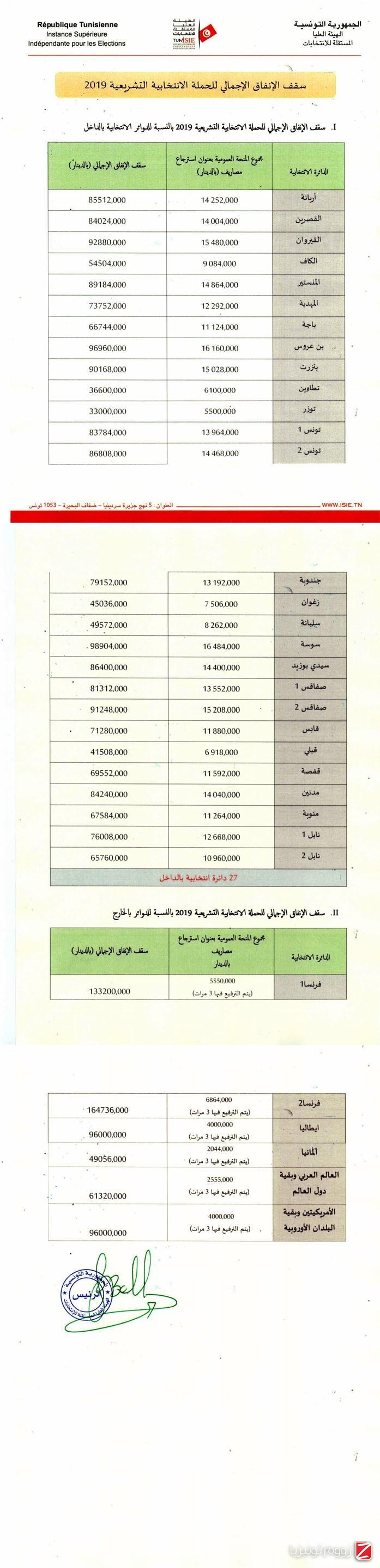 ونشرت الهيئة السقف المُتعلّق بـ33 دائرة انتخابيّة بالداخل والخارج، وهو كالتالي: