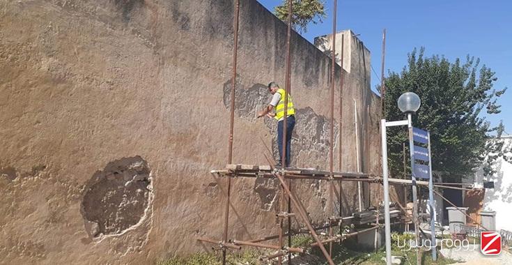- أشغال ترميم الجدار الأثري بباب العسل (المطل على مقر ادارة مراقبة المصاريف).