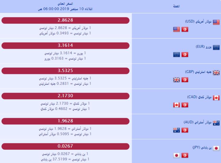 وفي ما يلي أسعار بقية العملات بالدينار التونسي لهذا اليوم: