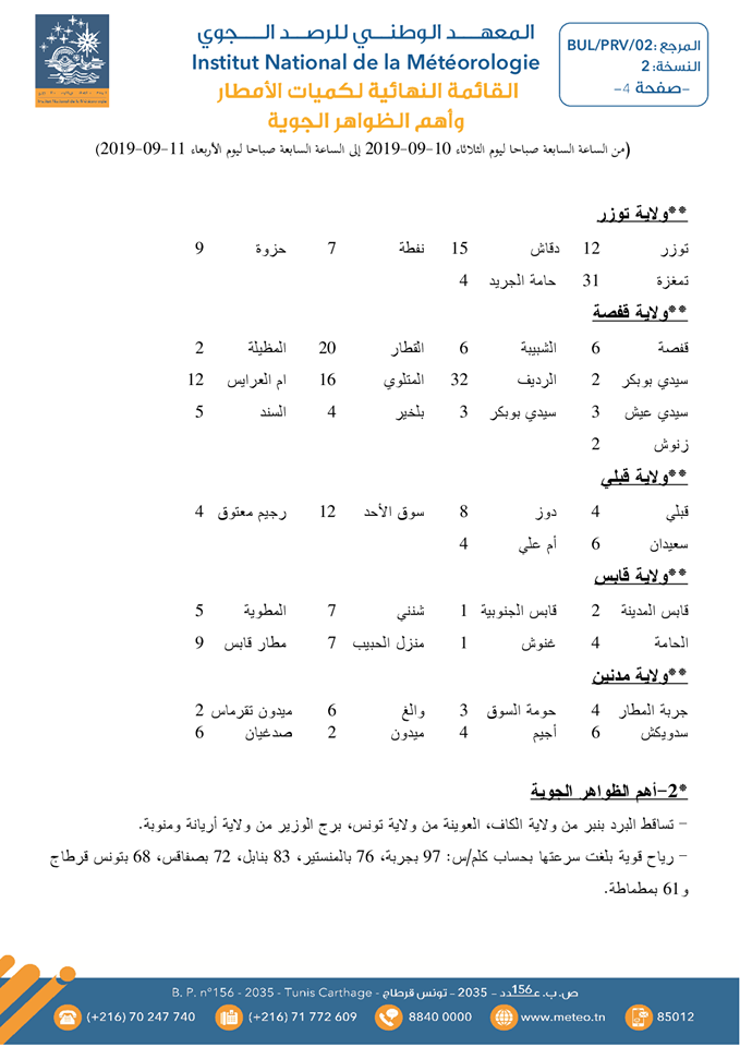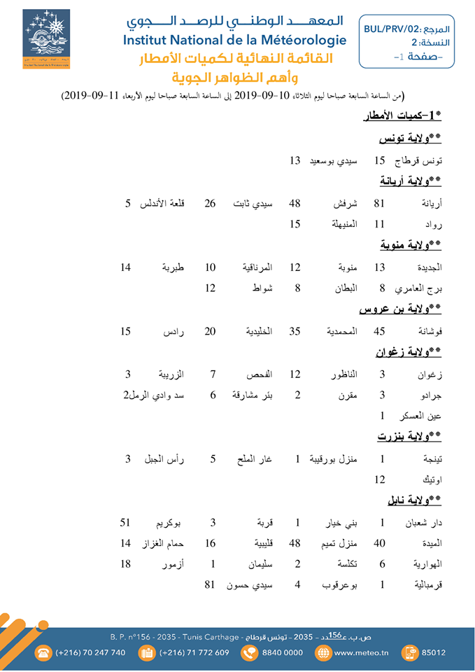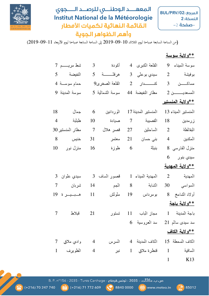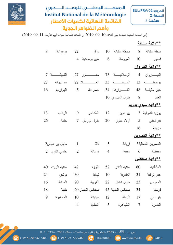 حيث شملت هذه القائمة كل المناطق التي نزل فيها الغيث النافع.