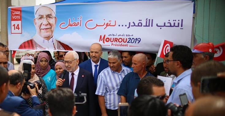 وأضاف الغنوشي، على هامش إشرافه على اجتماع انتخابي بإحدى الفضاءات الخاصة بمدينة القصرين في إطار حملة حزبه للانتخابات الرئاسية أمس الثلاثاء 10 سبتمبر 2019، أنه لا يمكن أن يختار لشعبه "حاكما فاسدا أو حاكما صالحا ولكنه عاجز أو حاكما ليس لديه تجربة"، بل هو اختار مورو "لأنه يجمع بين الذكاء والخبرة والعلم والسياسة والشهرة"، حسب قوله.