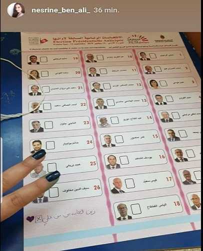 ونشرت نسرين بن علي صورة ورقة الانتخابات على موقع الانستاغرام.