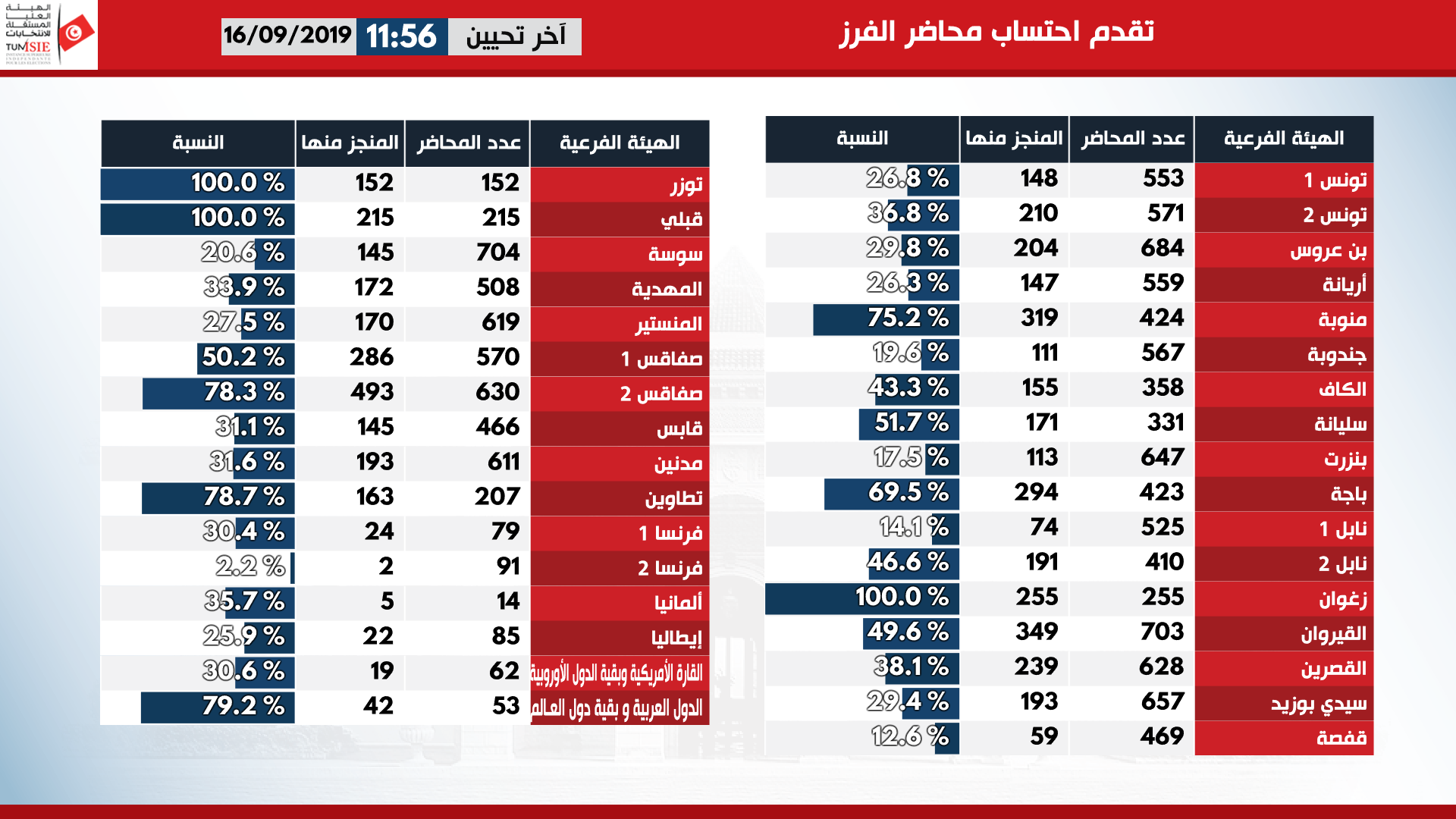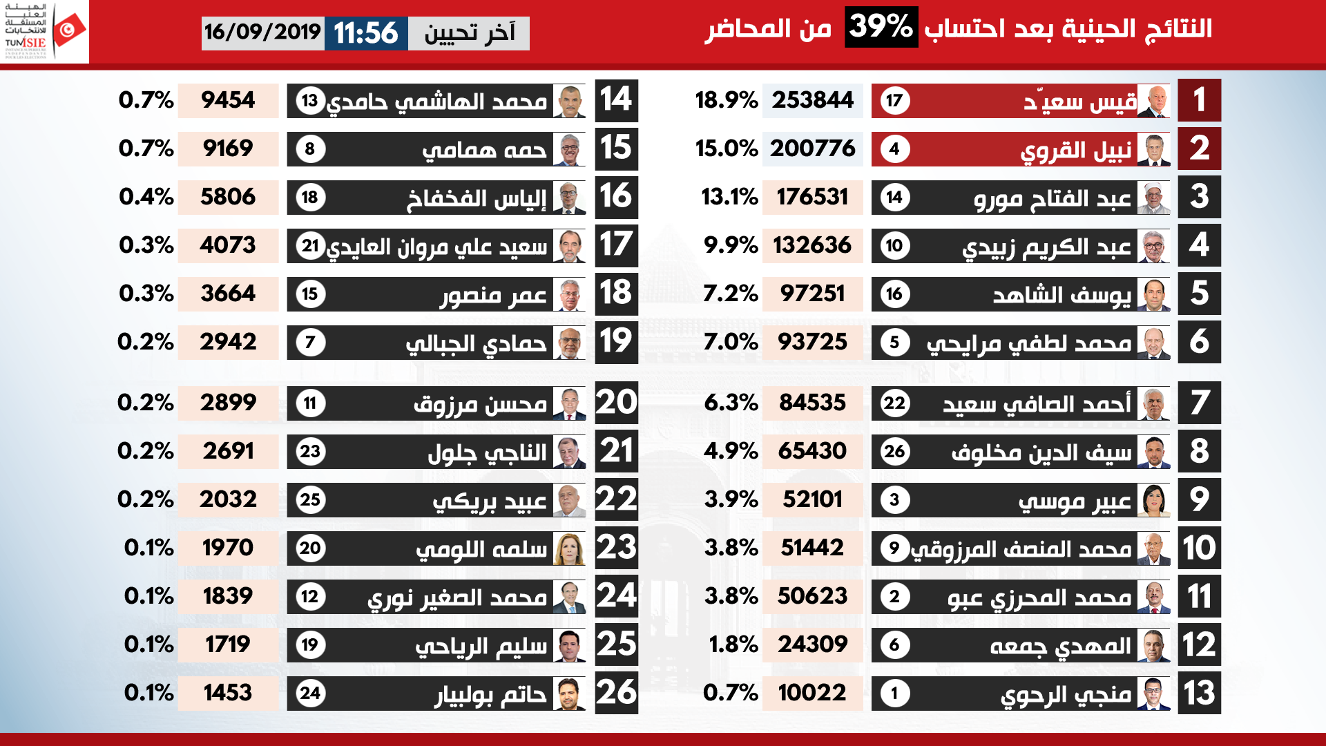 وفي ما يلي ترتيب المترشحين ونسب التصويت: