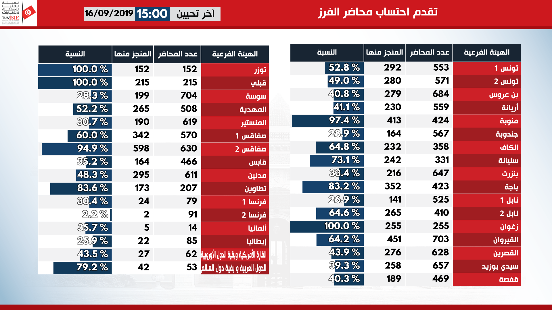 وفي ما يلي ترتيب المترشحين ونسب التصويت: