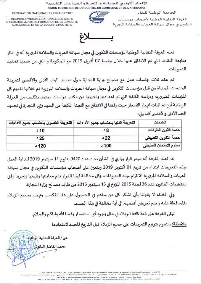 -ساعة التكوين في السياقة من 22 دينار الى 25 دينار