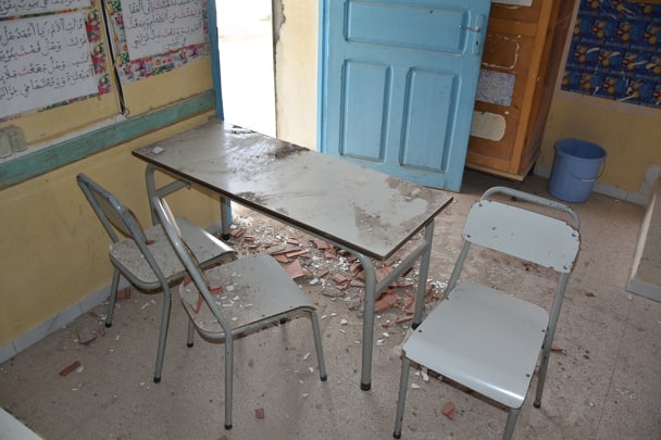 وقام الإطار الإداري والتربوي بنقل التلاميذ من قاعة أخرى يعاني سقفها تصدعا تحسّبًا لأي طارئ، وفق ما نقلته إذاعة شمس.