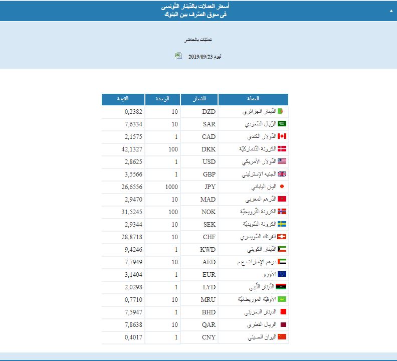 أسعار صرف العملة بالدينار التونسي اليوم الخميس 14 نوفمبر 2019
