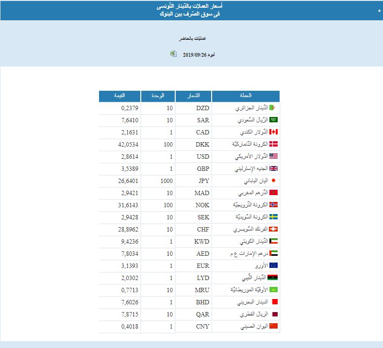أسعار صرف العملة بالدينار التونسي اليوم الخميس 14 نوفمبر 2019