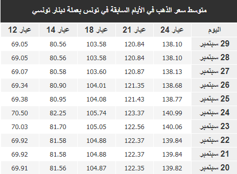 وفي ما يلي أسعار الذهب في الأسبوع الفارط :