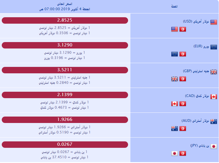 أسعار صرف العملة بالدينار التونسي لهذا اليوم (صورة)