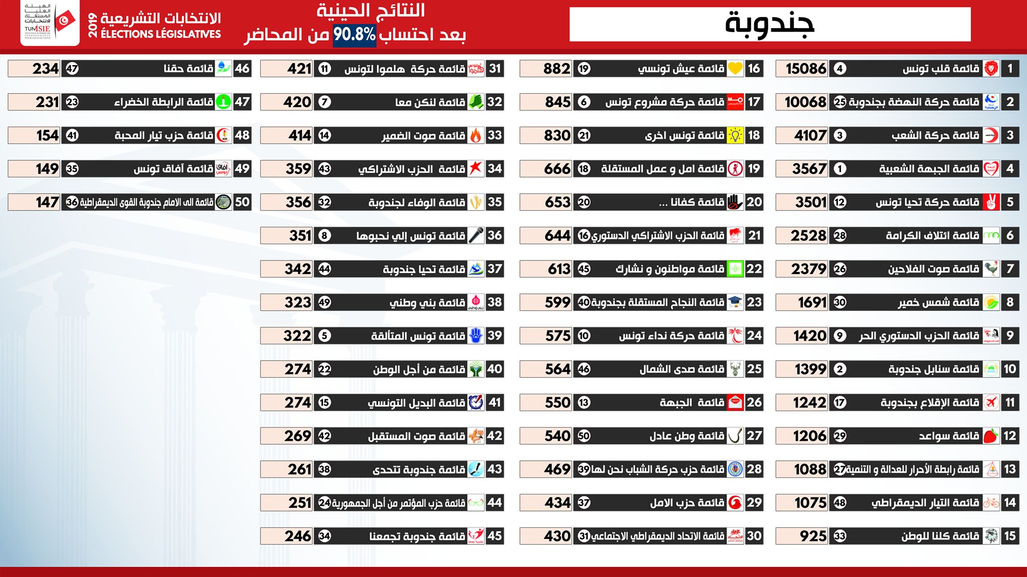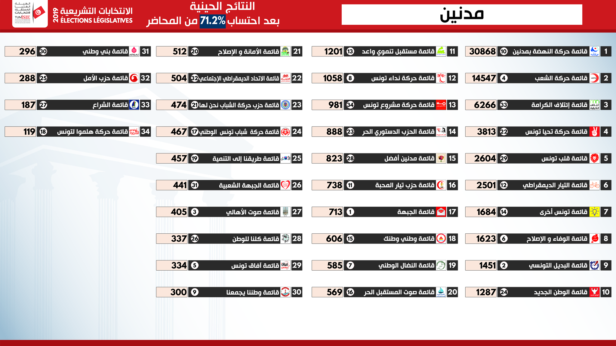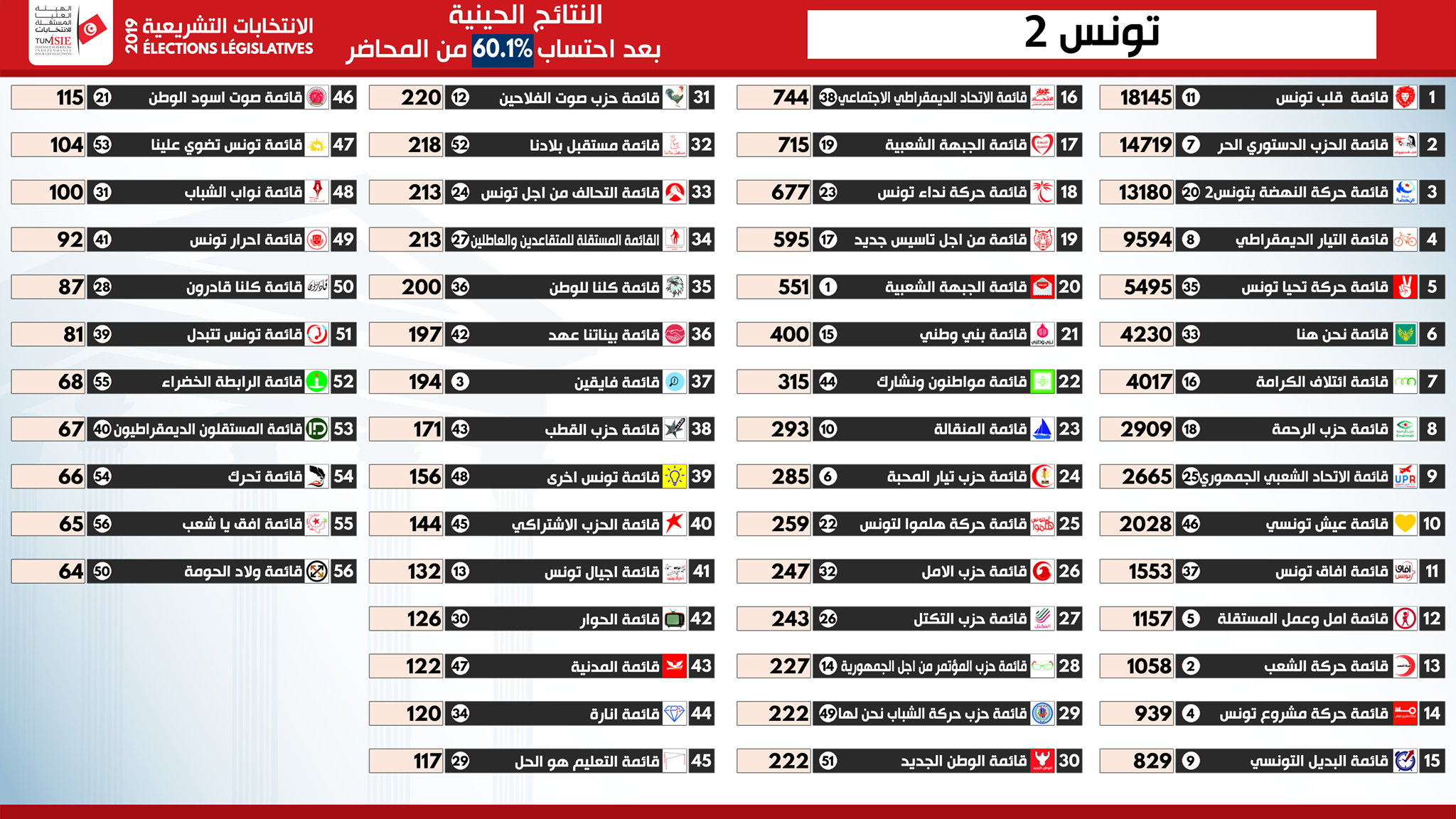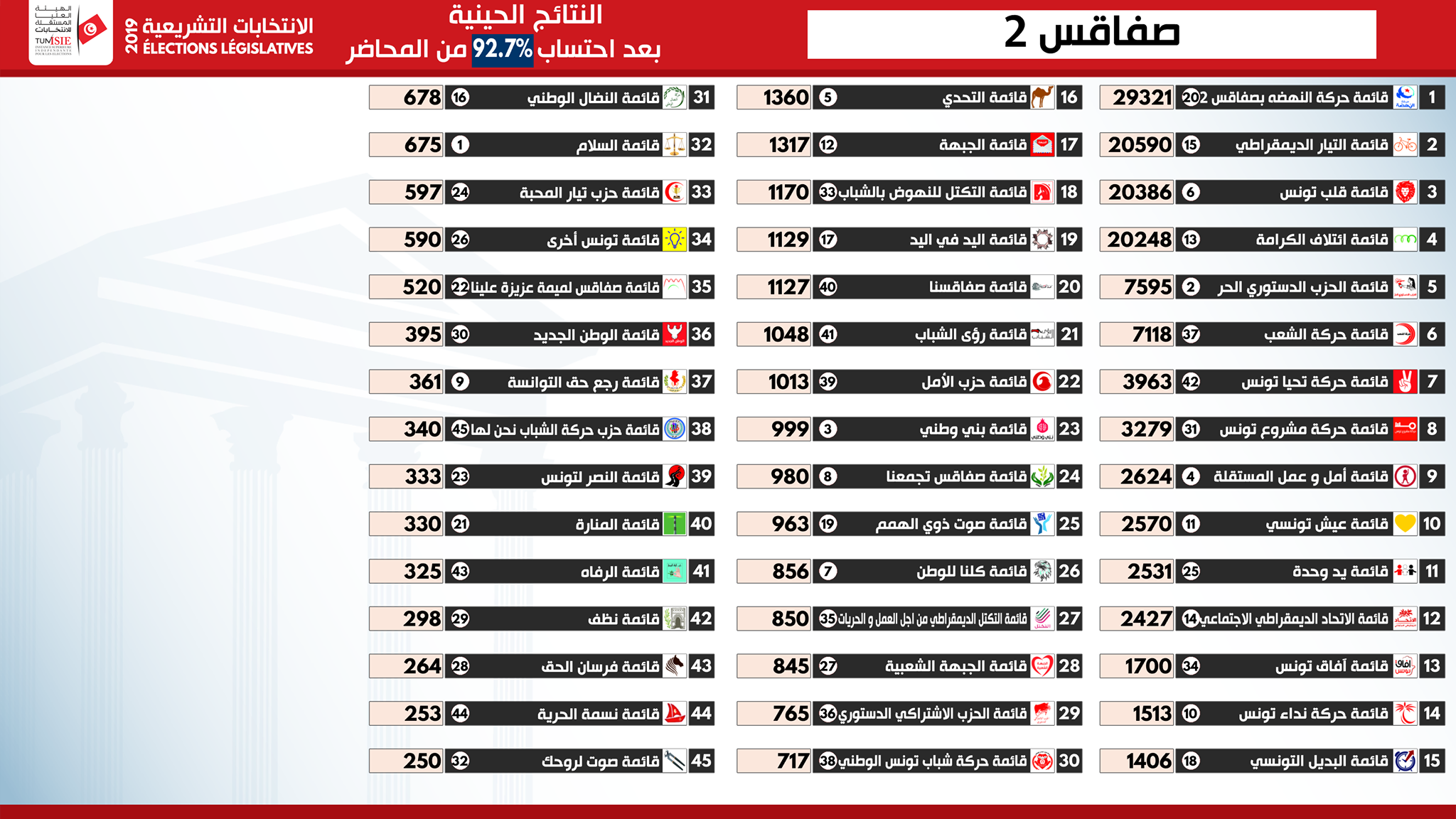 هيئة الانتخابات: النتائج الحينية للانتخابات التشريعية بجميع الدوائر الانتخابية