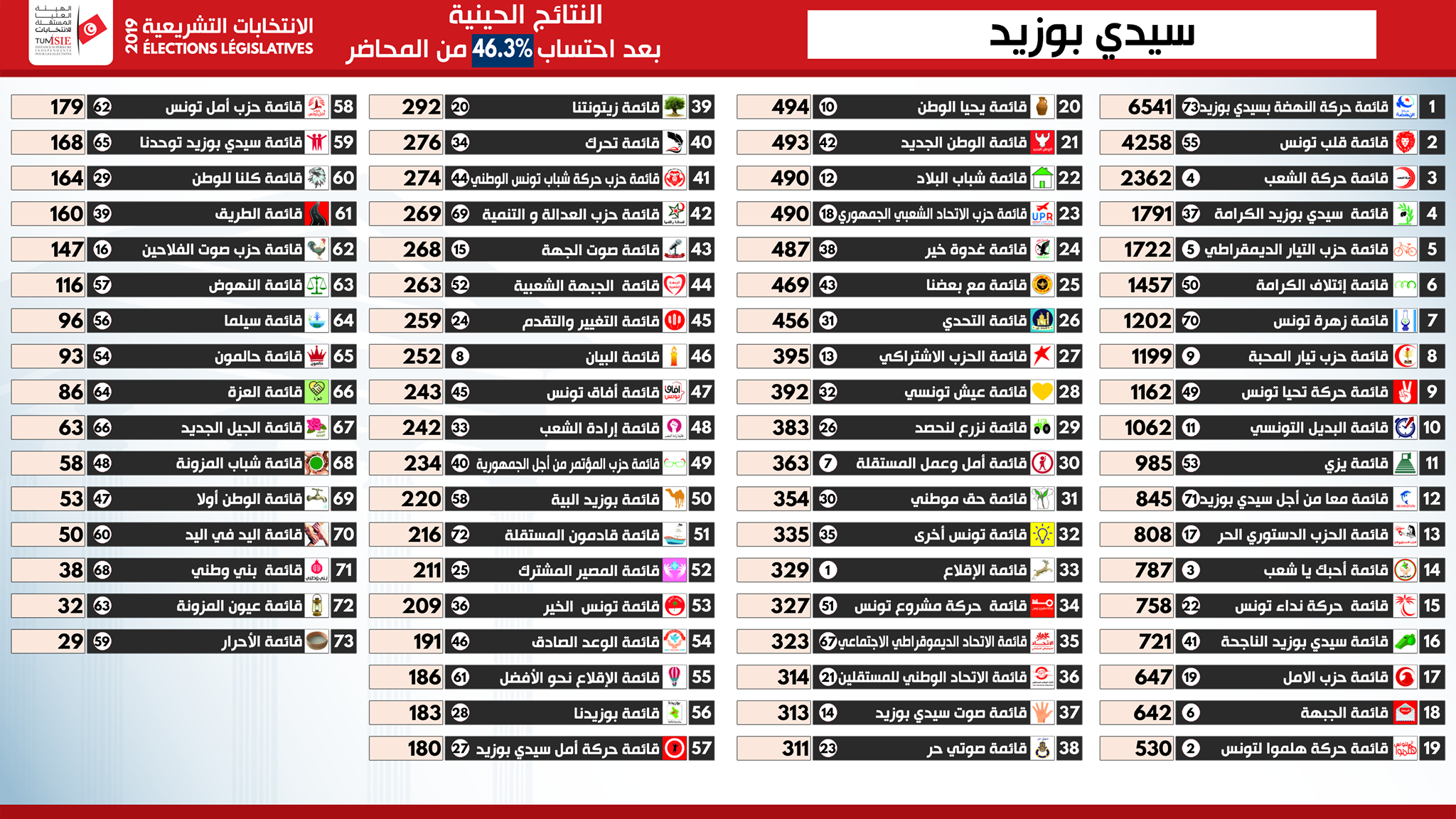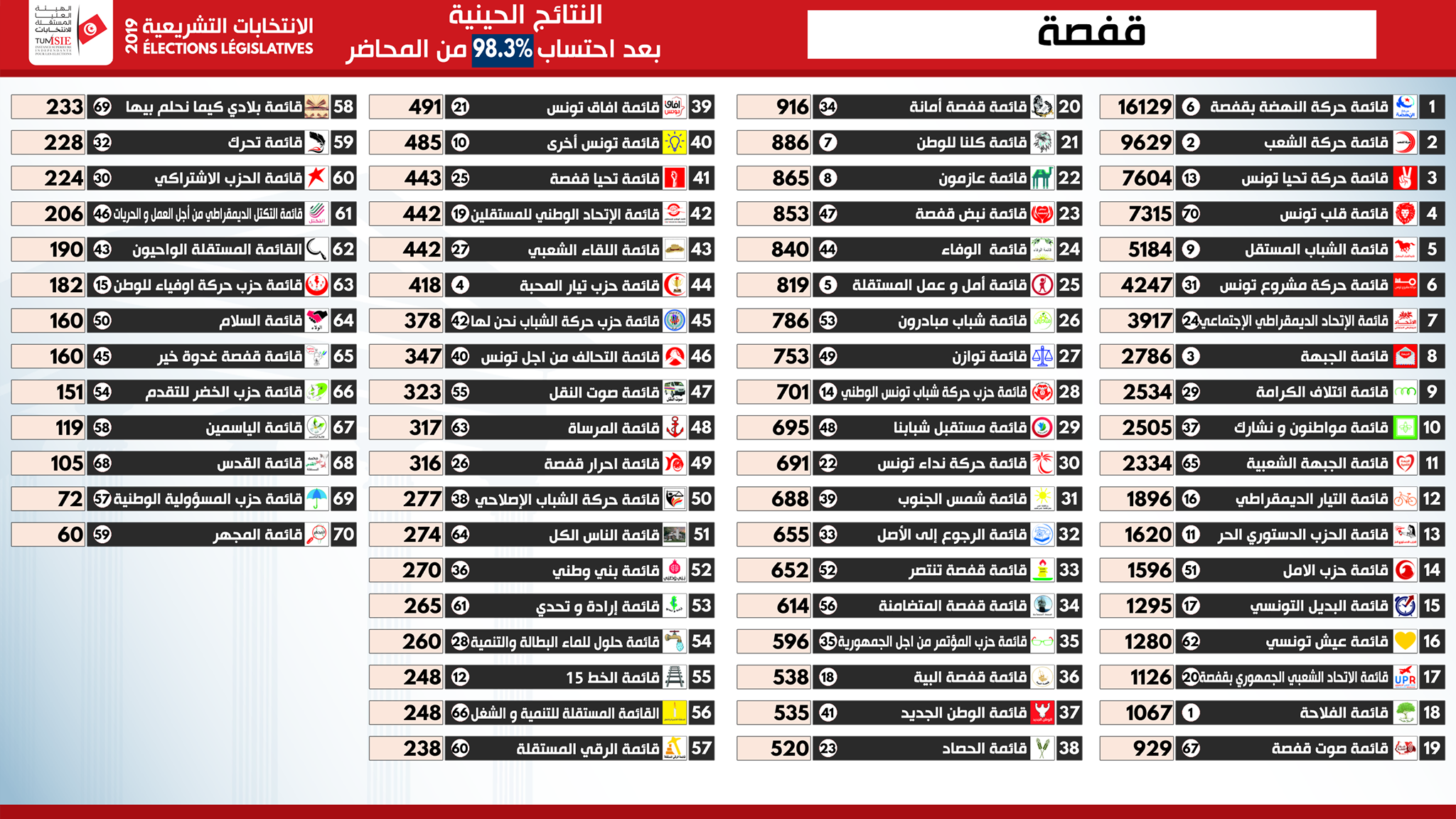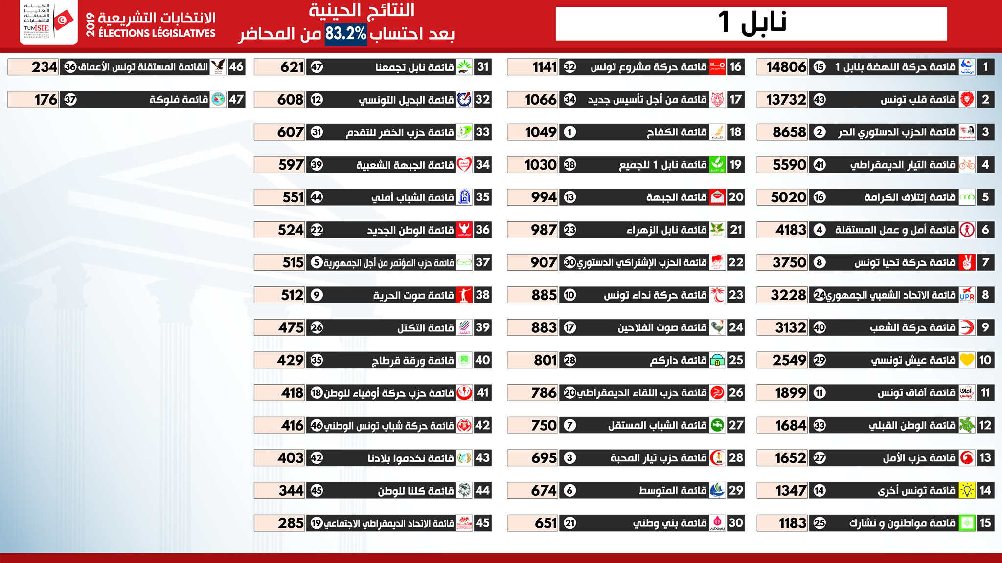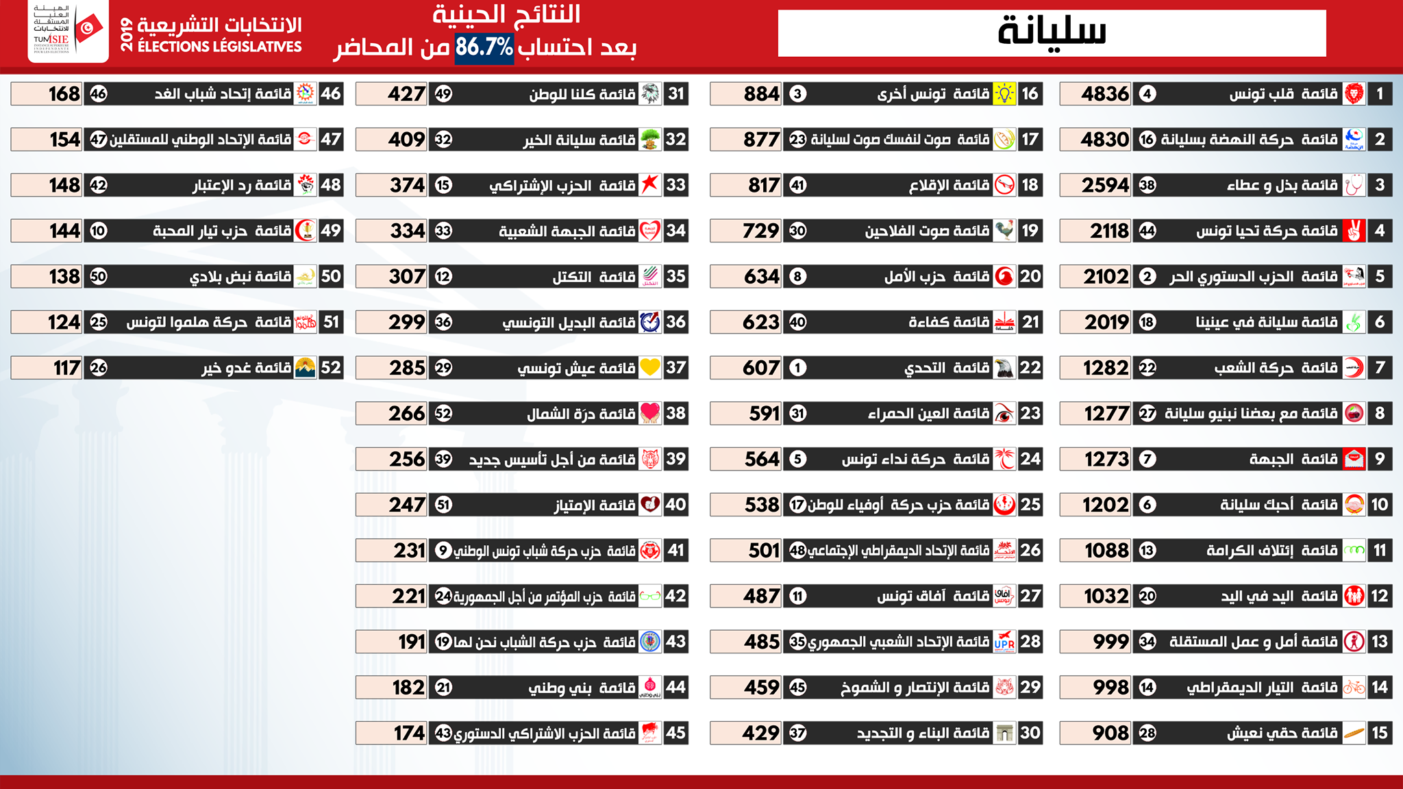 هيئة الانتخابات: النتائج الحينية للانتخابات التشريعية بجميع الدوائر الانتخابية