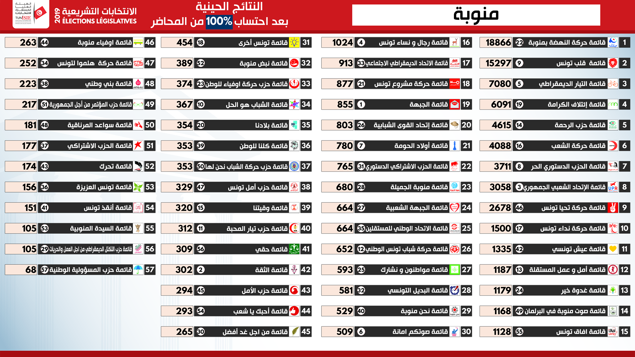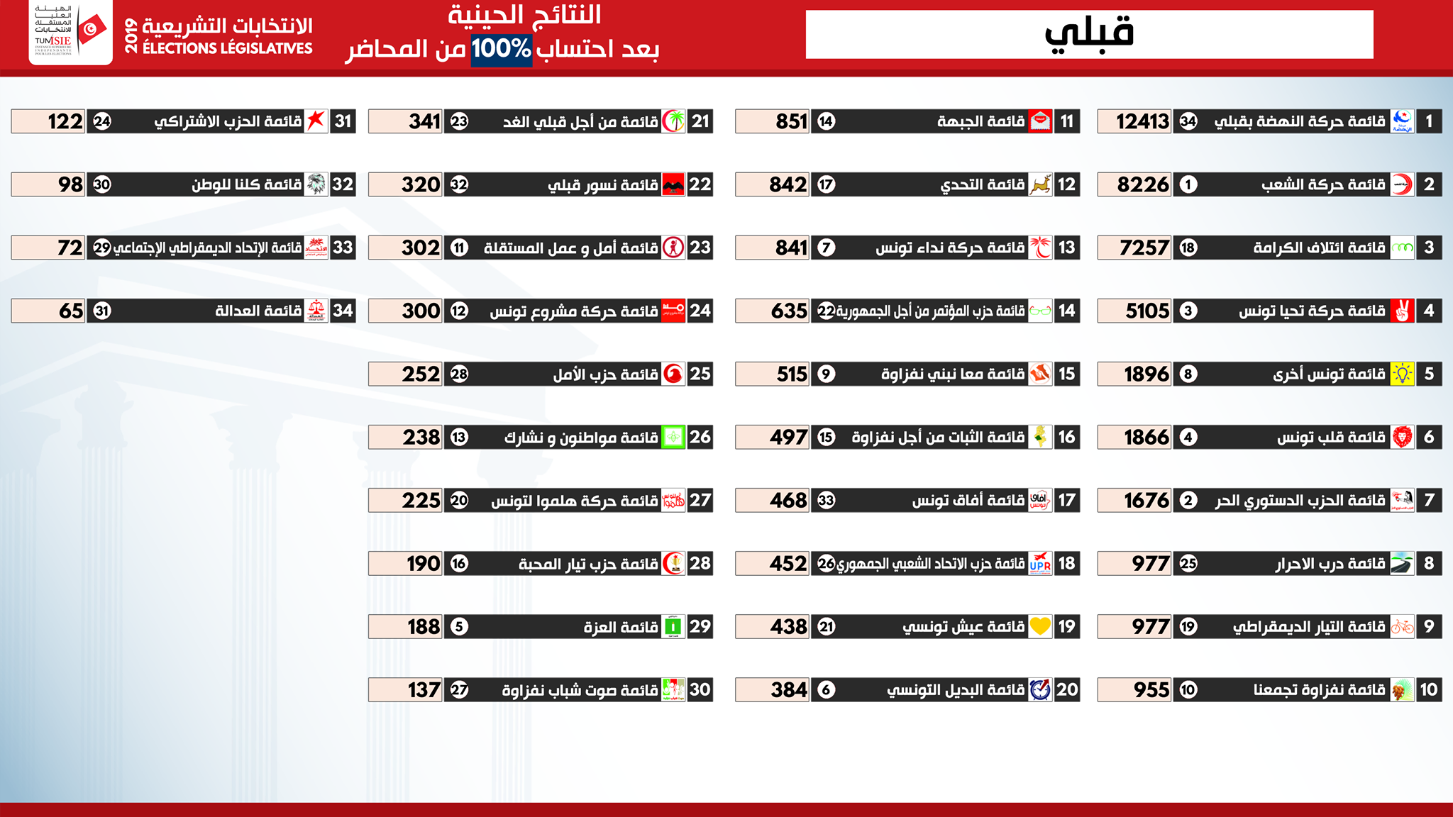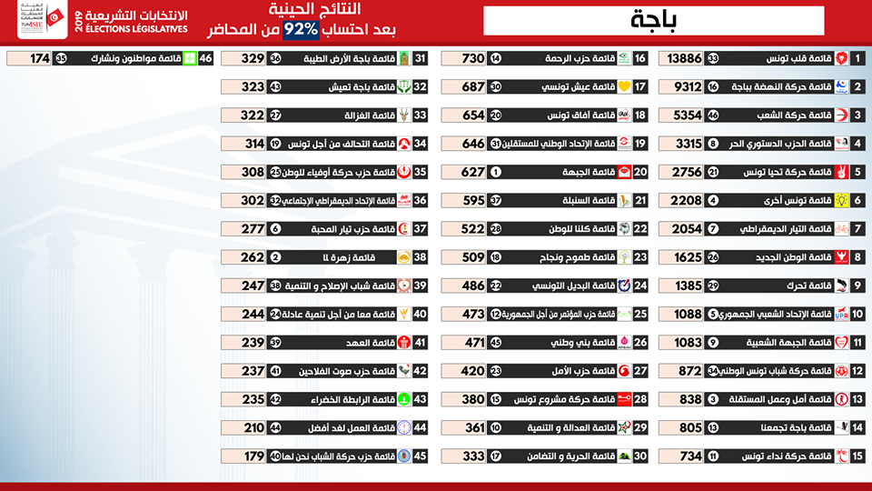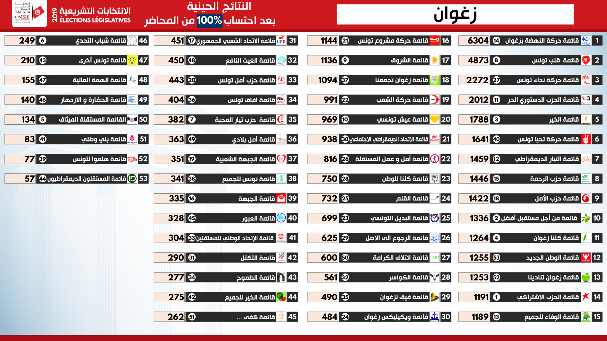 هيئة الانتخابات: النتائج الحينية للانتخابات التشريعية بجميع الدوائر الانتخابية