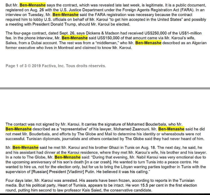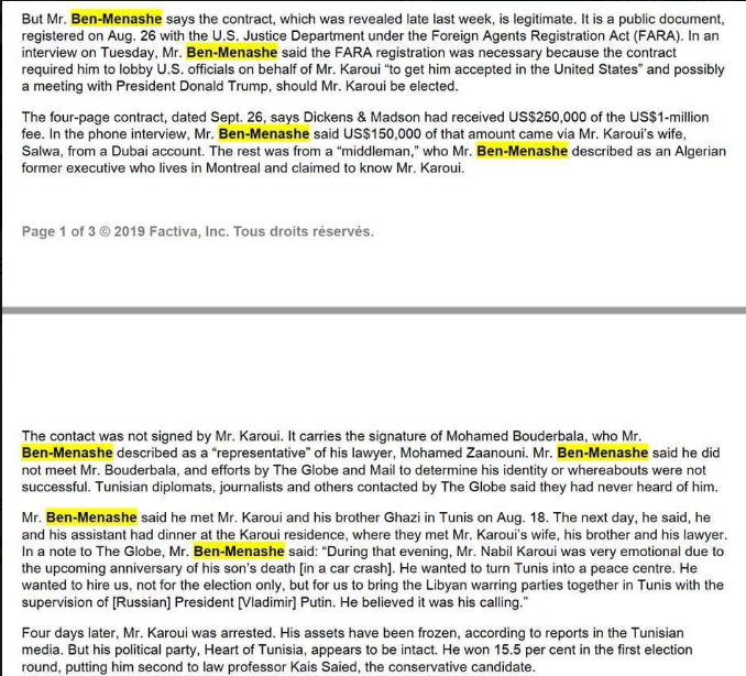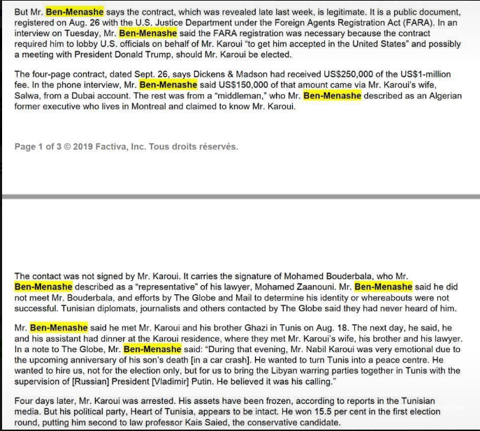 ومن جهته، أعلن الصحفي التونسي المقيم بكندا زهير طابا أنه تمكن من الوصول إلى صاحب شركة العلاقات الكندية ضابط المخابرات الاسرائيلي آري بن ميناشي وأنه أجرى معه حوار بالصورة والصوت سينشر قريبا.