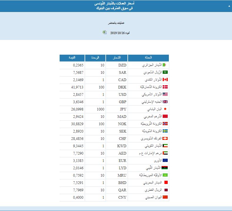 وفي ما يلي أسعار بقية العملات بالدّينار التّونسي في سوق الصّرف بين البنوك: