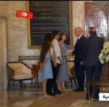 تواجدت إشراف شبيل، زوجة رئيس الجمهورية الجديد قيس سعيّد اليوم الأربعاء 23 أكتوبر 2019، بقصر قرطاج في استقباله، مرفوقة بأبناءها الثلاث.