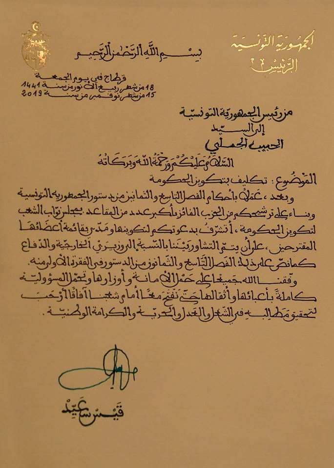 يذكر أنّ مجلس شورى حركة النهضة كان رشح الجملي رسميا لرئاسة الحكومة.