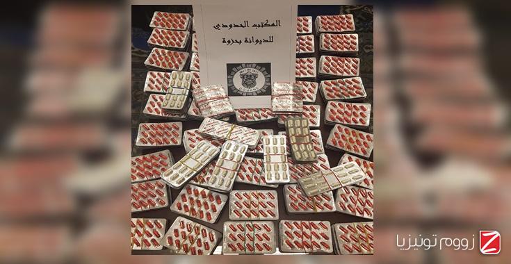 تمكن أعوان الديوانة بالمعبر الحدودي بحزوة على الحدود الغربية التونسية الجزائرية من إحباط عملية تهريب لكمية هامة من الأدوية المخدّرة متمثلة في 3369 حبّة تمّ ضبطها مخفيّة داخل سيارة على متنها ثلاث مسافرين جزائريين على إثر خضوعهم لإجراءات المراقبة الديوانية قبل المغادرة إلى القطر الجزائري.
