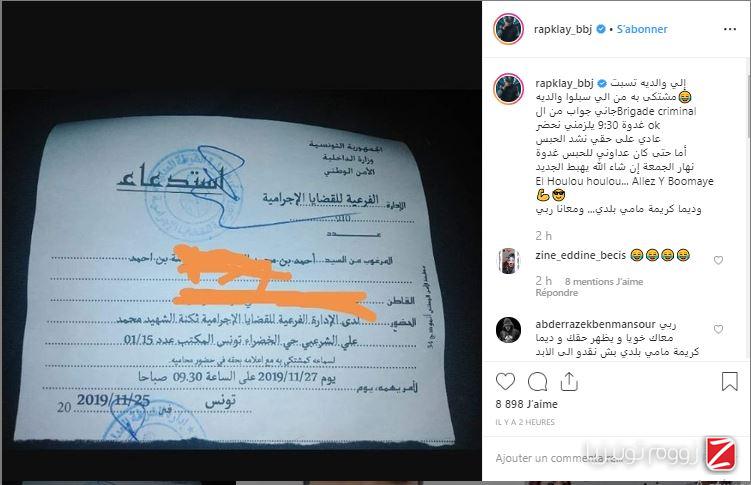 وتعليقًا على ذلك قال كلاي "إلي والديه تسبت مشتكى به من الي سبلوا والديه، عادي على حقي نشد الحبس، أما حتى كان عداوني للحبس غدوة نهار الجمعة إن شاء الله يهبط الجديد".