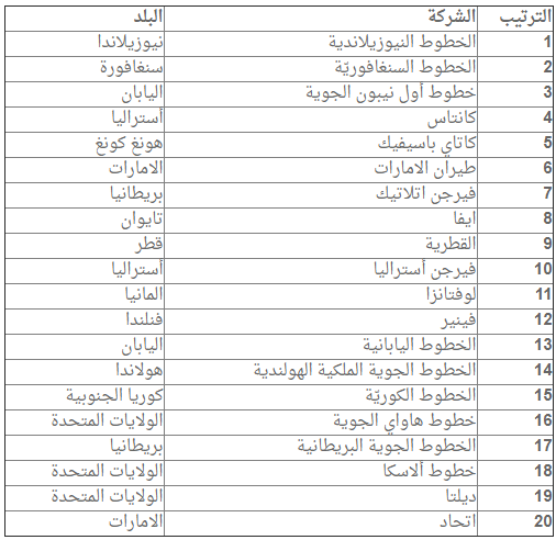 وفي ما يلي قائمة أحسن 20 خطا جويّا في العالم :