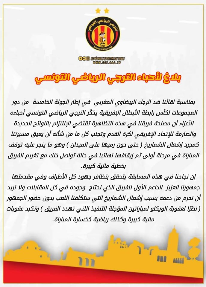 الترجي يدعو جماهيره إلى عدم إشعال الشماريخ
