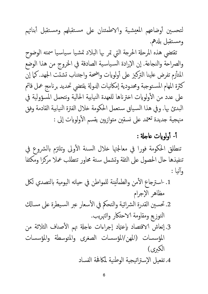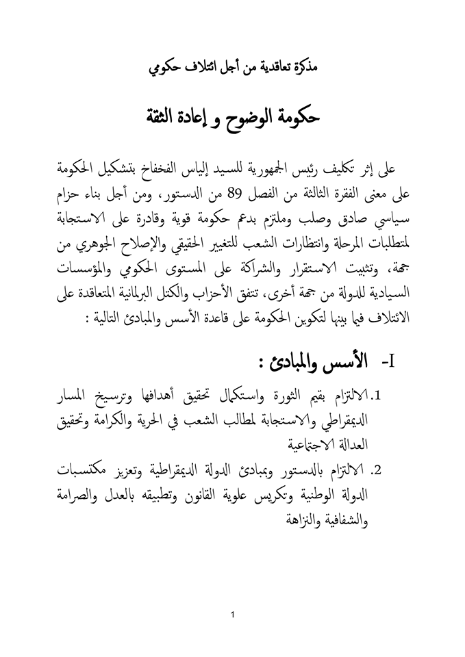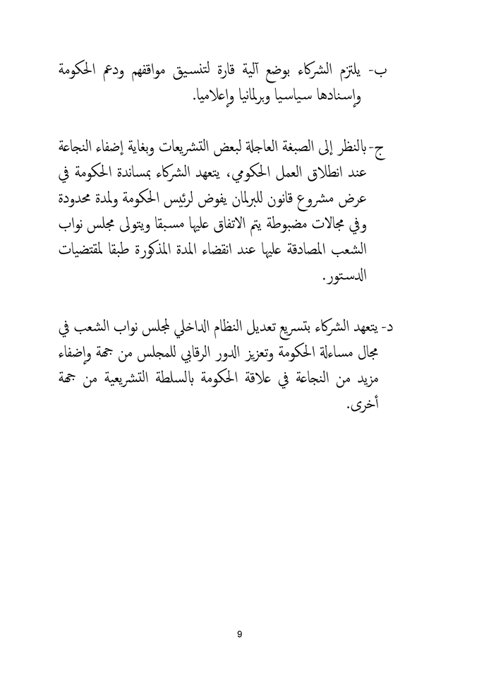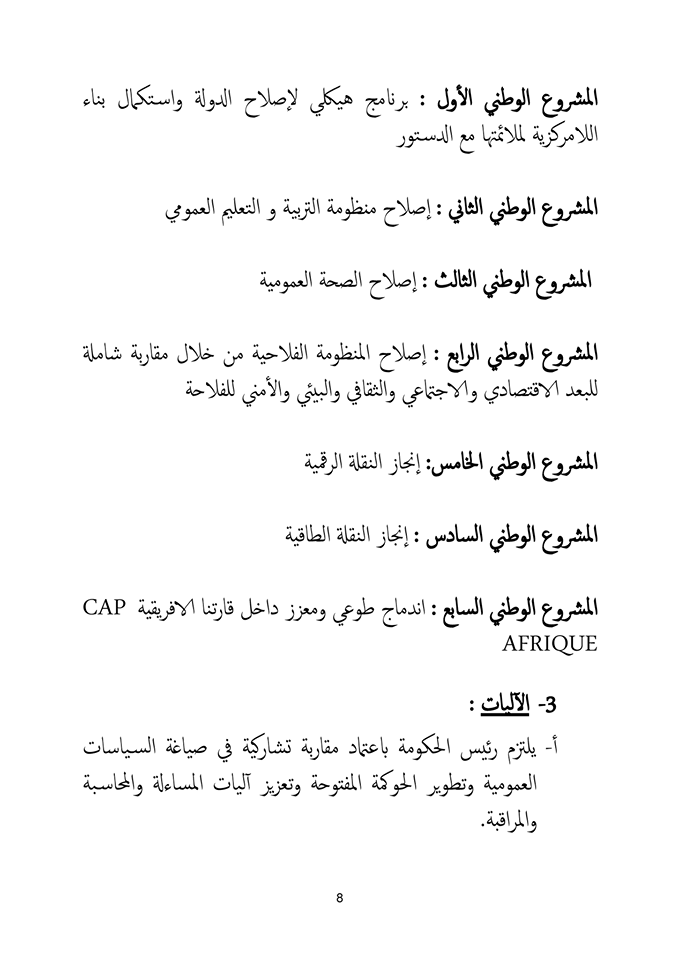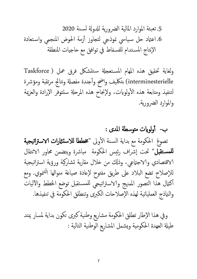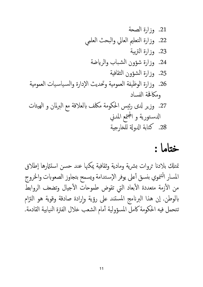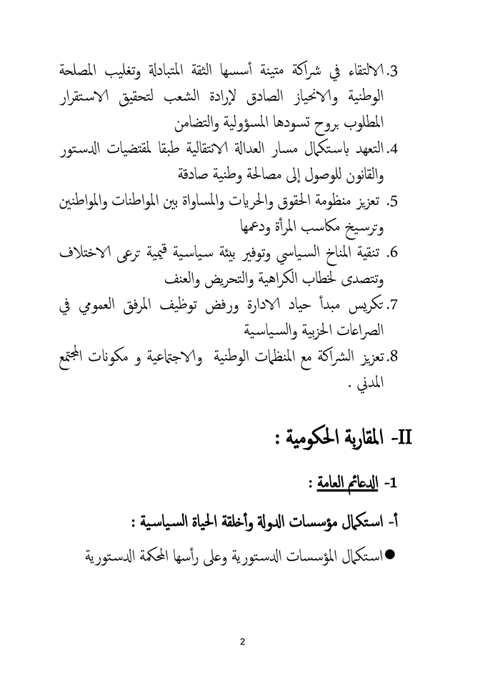 وسيتم خلال المشاورات اعتماد الوثيقة المرجعية للبرنامج الحكومي.